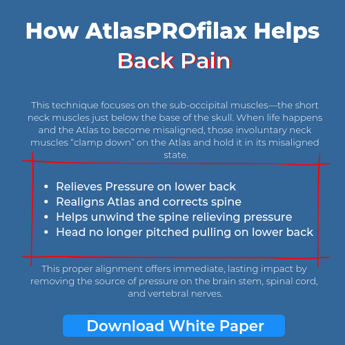 - Spinal Alignment: Spinal misalignment can also be a contributing factor to lower back and sciatic pain. The misalignment of the Atlas, the first vertebrae of the spine which is located just at the base of the skull, can raise an individual’s risk of further injury.